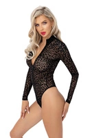 Body F287 Leopard Flock Bodysuit XXL Noir Handmade