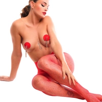 Kinky Diva Cabaret Starlet Tights Red/Rhinestones