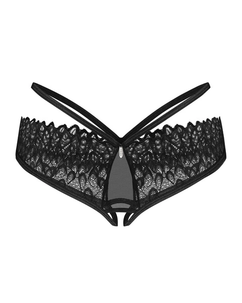 The Donarella lace briefs are the essence of feminine charm with a spicy twist. Their open crotch promises unforgettable sensations, while the combination of delicate straps and a floral pattern creates a unique effect. The elastic fabric gently hugs the body, offering comfort and a perfect fit. A silver pendant completes the design with grace.