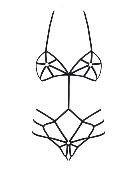 The Slave model is a daring body made of soft straps that wrap the body from every angle, creating a striking and intensely provocative look. Its minimalist cut with an open crotch and tie closures at the neck and back makes it easy to put on and take off while ensuring a snug fit. This is a bold choice for women who love to surprise and take control of the sensual energy in the bedroom.