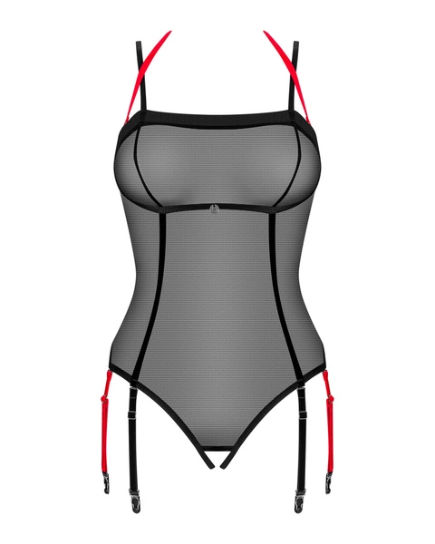 Body Glandez to bielizna, która nie pozwala przejść obojętnie. Otwarty krok w połączeniu z prześwitującą tkaniną sprawia, że każdy detal nabiera wyjątkowego znaczenia. Kontrast czerwieni i czerni podkreśla charakter całości, a odpinane paski do pończoch pozwalają z łatwością zmieniać styl – od subtelnego po wyzywający. To model dla kobiet, które lubią prowokować i czuć się absolutnie wyjątkowo.
