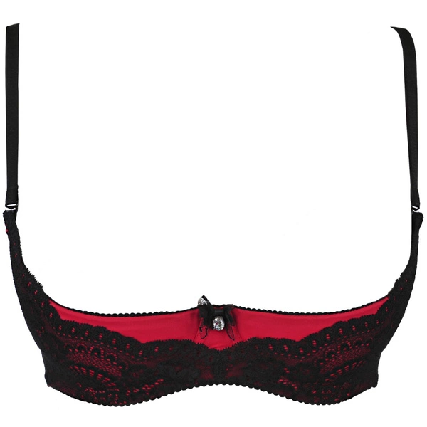 Krwistoczerwony biustonosz typu peek-a-boo to gorąca prozpozycja od Axami na jesienny sezon. Uwodzicielski kolor papryczki chili przeniesie Cię w świat namiętności i rozpusty. Miseczki zdobi orientalna koronka a w centralnej części znajduje się cyrkoniowa ozdoba, model posiada regulowane, odpinane ramiączka i podwójne zapięcie na haftkę. Biustonosz jest usztywniany.