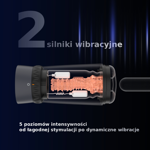 Podwójny napęd rozmieszczony na całej długości wkładu zapewnia intensywne, równomierne wibracje. Do wyboru 5 stopni intensywności – od delikatnego masażu po dynamiczną stymulację.