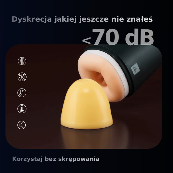 Praca poniżej 70 dB pozwala korzystać z urządzenia w warunkach wymagających ciszy i dyskrecji, np. w hotelu czy mieszkaniu współdzielonym.