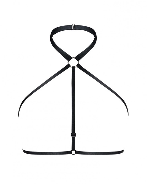 Body Harness Patricia to niezwykle efektowny akcent z najnowszej kolekcji Promees, który natychmiast przyciąga wzrok. Jego konstrukcja oparta na elastycznych paskach oplatających ciało w strategicznych miejscach, kieruje uwagę ku biustowi, dzięki starannie rozmieszczonym liniom tuż nad piersiami. Centralny punkt stanowi srebrne, metalowe kółko umieszczone tuż pod szyją – subtelny, a zarazem wyrazisty detal, który nadaje całości charakteru. Całość najlepiej prezentuje się w duecie z biustonoszem, który staje się integralnym elementem stylizacji.