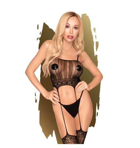 Sex Dealer od Penthouse Lingerie to seksowny kombinezon z pasującymi pończochami dołączonymi w komplecie. Kombinezon ma pionowe paski, dyskretnie podkreślające figurę, kwadratowy dekolt i wąskie ramiączka typu spaghetti, które zapewniają uwodzicielski wygląd. Ten zestaw jest idealny dla osób, chcących oczarować partnera swoimi pośladkami i udami.