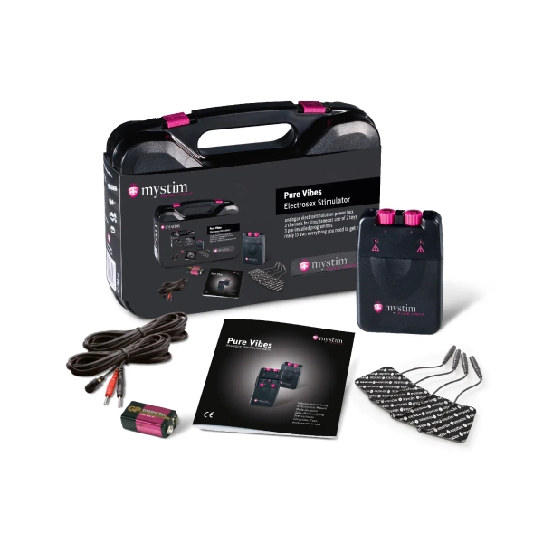 Mystim Pure Vibes – це аналоговий контролер, який взаємодіє з іграшками для електростимуляції. Завдяки цьому пристрою ви можете скористатися функцією електростимуляції, яка є унікальним способом отримання задоволення. Вона полягає у стимуляції тіла імпульсами струму низької напруги. Окрім того, що електростимуляція приносить вам виняткову насолоду, вона також дозволяє зміцнити та покращити кровообіг. Прилад Pure Vibes має два окремі канали. До кожного з них можна підключити гаджет Mystim, який буде проводити струм безпосередньо до тіла. Кабелі не порвуться, оскільки роз'єми можуть обертатися на 360 градусів. Продукт можна придбати з постійними електродами та гелем. Вже зараз використовуйте всі можливості електростимуляції.