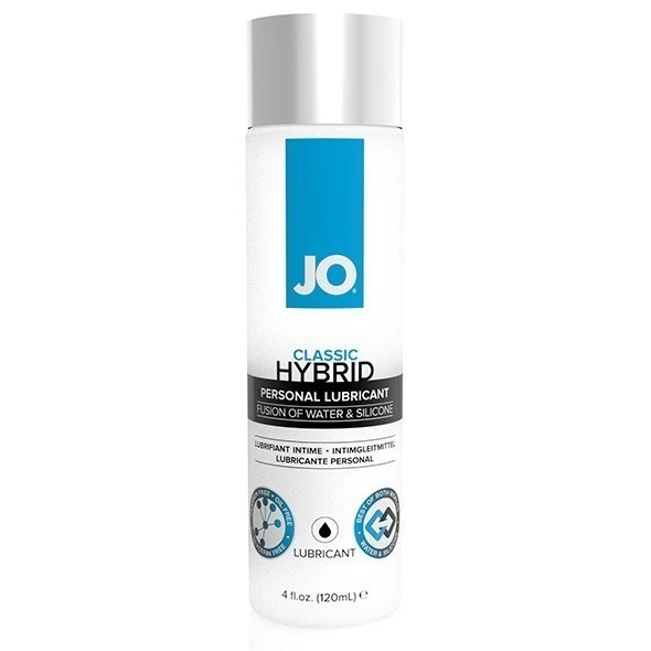 Система JO Hybrid Lubricant поєднує в собі найкращі властивості водяних та силіконових лубрикантів. Продукт безпечний у використанні з усіма іграшками та презервативами. Цей гель є поєднанням JO Premium та JO H2O. Продукт має шовковисту текстуру та забезпечує тривале зволоження і ковзання завдяки вмісту силікону, не залишаючи відчуття липкості.
