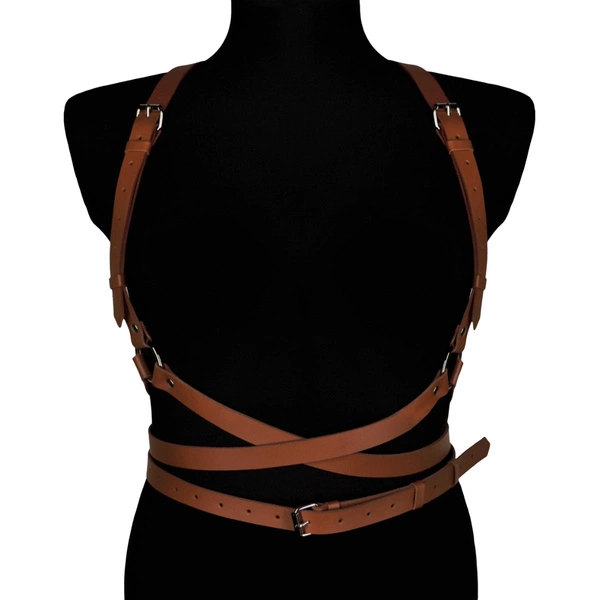 Ретельно скроєні смужки коричневого поясу на тіло Karess Noemi шириною 2 см обвивають талію та плечі, тонко підкреслюючи красу жіночої фігури. Коричнева шкіра, м'яка на дотик, забезпечує не лише естетичний вигляд, але й комфорт носіння щодня.
