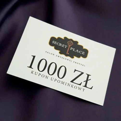 Подарунковий сертифікат на 1000 zł стане ідеальним подарунком для близької людини. Він підійде для різних свят - як на день народження, так і на свята, Валентинки, річниці, хлопчачі та дівочі вечірки. Якщо ви хочете зробити комусь особливий сюрприз, але не знаєте, що обрати, подаруйте сертифікат до Secret Place. Такий подарунок мінімізує ризики і водночас може забезпечити масу задоволення. Сума 1000 zł є значною і дозволяє придбати справді розкішні аксесуари з нашого салону. За таку суму кожен отримувач зможе реалізувати свої найпотаємніші мрії та обрати бажані еротичні аксесуари. Подарунковий сертифікат Secret Place можна використати у Варшаві (Prosta 2/14) або в Познані (Szkolna 17). Цей сертифікат не підлягає індивідуальному знижуванню (ціна сертифіката не підлягає знижкам, промокодам тощо).