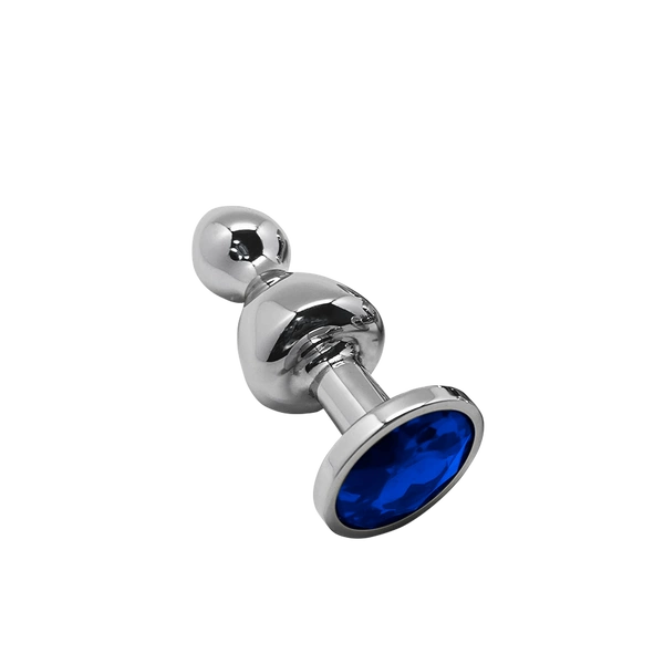 Lollypop Double Ball Metal Plug M Blue – елегантна анальна пробка з синім кристалом, розмір M