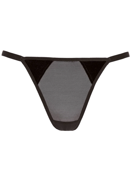 Фасон сильно оголює сідниці, підкреслюючи та моделюючи їх лінію. Чуттєвий крій доповнений регулюванням з боків, завдяки чому стринги можна ідеально підігнати під фігуру. Задня частина виконана з чорного прозорого тюлю, а обробка з м'якої ламаної гуми гарантує комфорт і запобігає подразненню шкіри під час носіння. Особливу увагу приділено також крокви, яка виготовлена з атестованої 100% бавовни, що має сертифікат Oeko-Tex STANDARD 100. Завдяки цьому продукт повністю безпечний для чутливої та вимогливої шкіри.