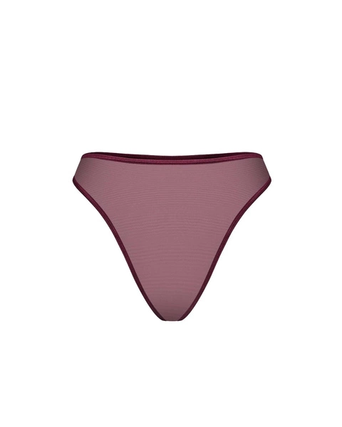 Gwen Burgundy – це спідня білизна, яка чуттєво облягає жіноче тіло, підкреслюючи його природні вигини та спокушаючи тонкою прозорістю. Тонка сітка насиченого бордового кольору обвиває стегна, немов еротичний шепіт – ледь помітний, але незабутній. Це білизна, яка говорить більше тілом, ніж словами.
