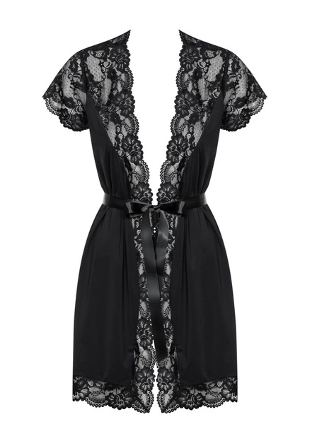 Obsessive пропонує елегантний халат, який вражає тонким шармом і ніжною ноткою чуттєвості. Закритий матеріал у поєднанні з мереживними деталями створює надзвичайно ефектну композицію, ідеальну для інтимних моментів і особливих вечорів.