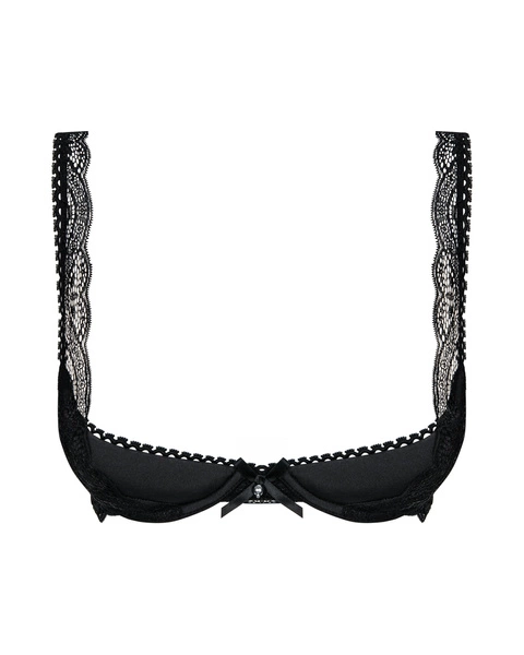 Usztywniane miseczki z wkładkami delikatnie unoszą piersi, podkreślając ich kształt i dodając ponętnego zaokrąglenia. Słodka satynowa kokardka umieszczona na mostku wprowadza uroczy akcent, który przełamuje zmysłowy charakter bielizny nutą romantyzmu.