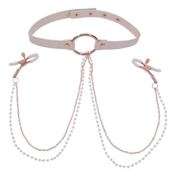 S&M Peaches ‘N Creame Collar With Nipple Clamps Sportsheets